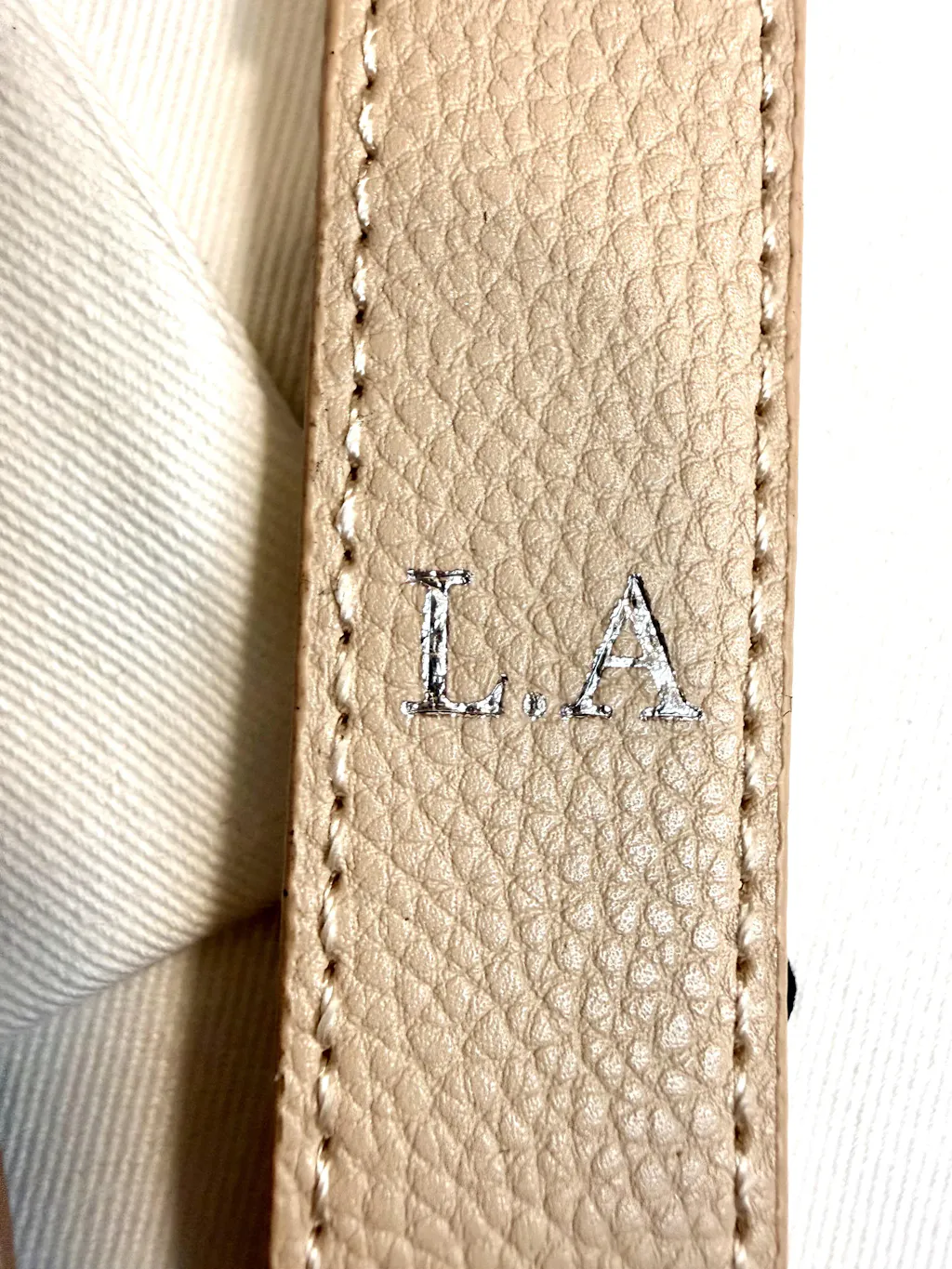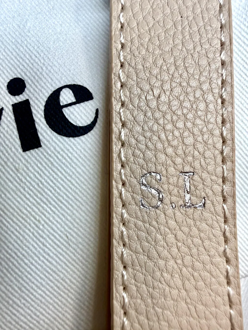 מגן עור בז' עם ארנק כרטיסים מובנה + שרשרת בד בז' מתכווננת טומי (סוגר זהב)