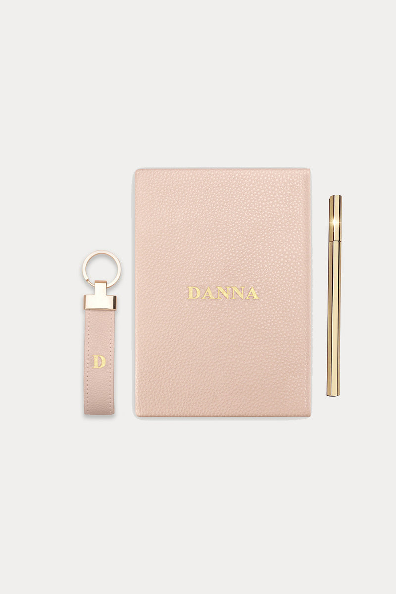 מארז הכולל מחברת שורות עם כריכה קשה + מחזיק מפתחות מוארך בז'