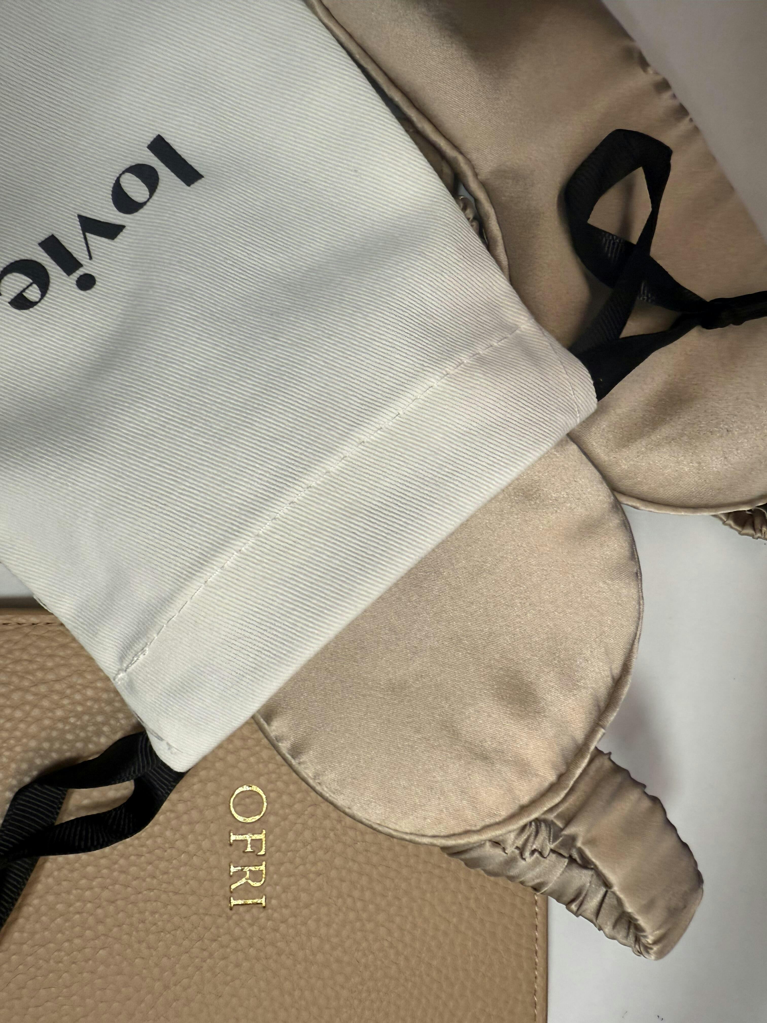 כיסוי עיניים 100% משי טהור שיעניק לך מנוחה אמיתית (!) – בבית, במהלך טיסה, במלון וכמובן בלילה. מסיכת השינה שלנו עוטפת בעדינות את העיניים מבד משי טהור מפנק ונושם, חוסמת את האור ומרגישה כמו מגע רך של יוקרה על העור.