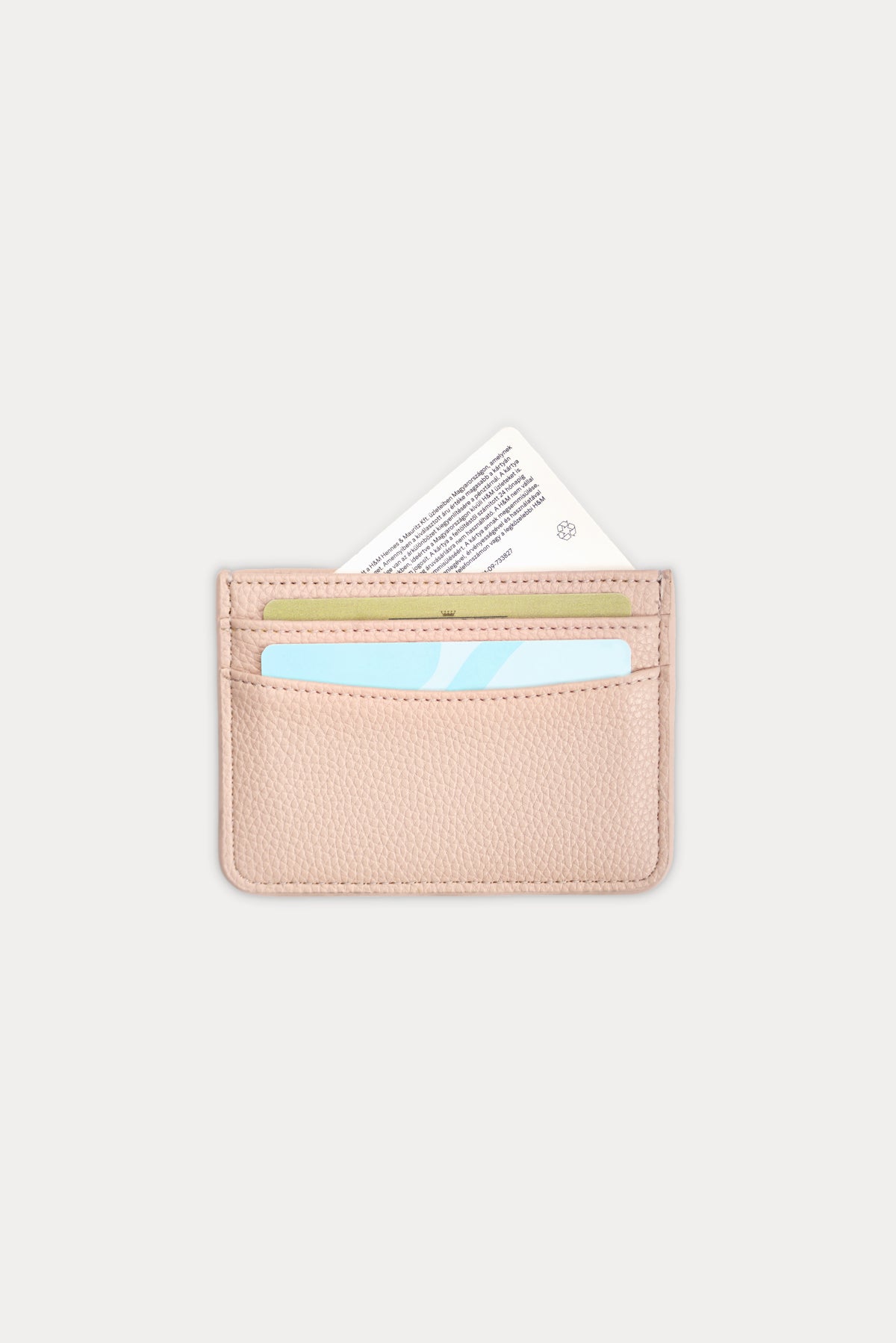ארנק כרטיסים דו צדדי עם חריטה אישית מעור טבעוני בז'