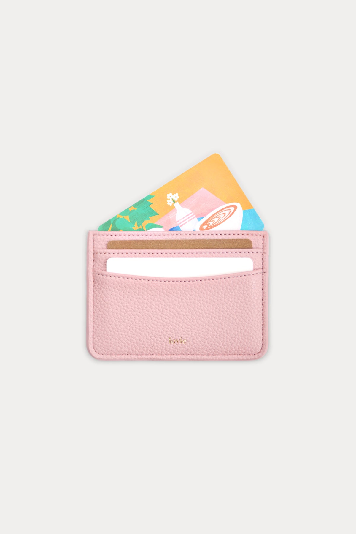 ארנק כרטיסים דו צדדי עם חריטה אישית מעור טבעוני ורוד