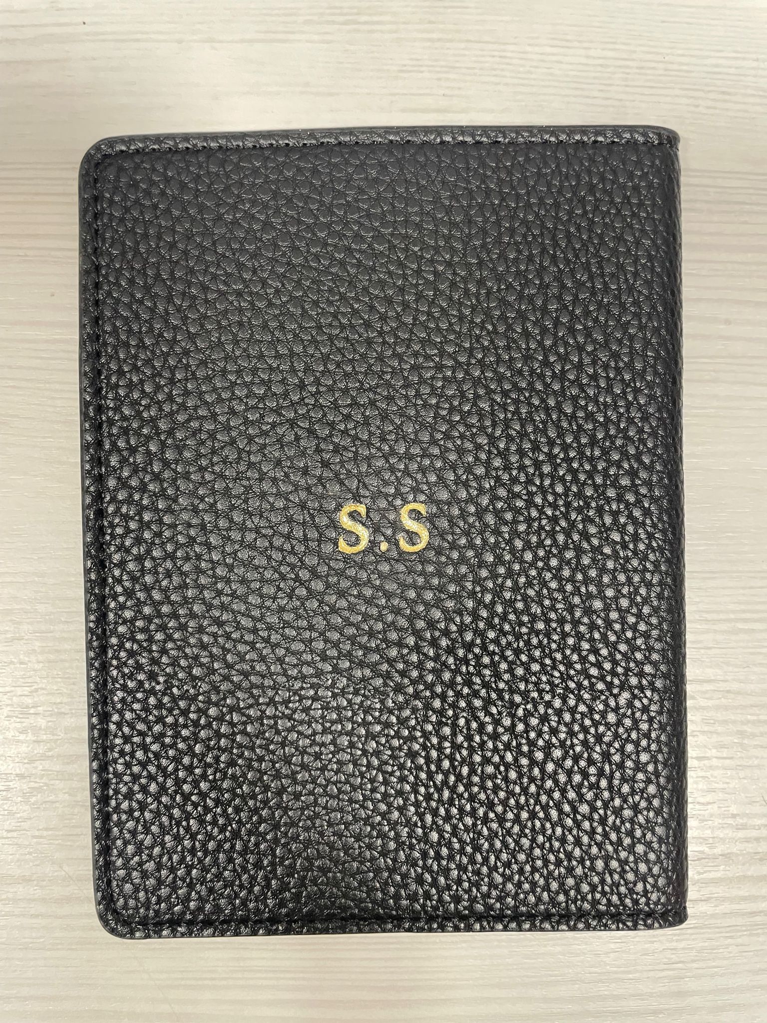 כיסוי לדרכון עם חריטה אישית S.S מעור טבעוני בגוון שחור