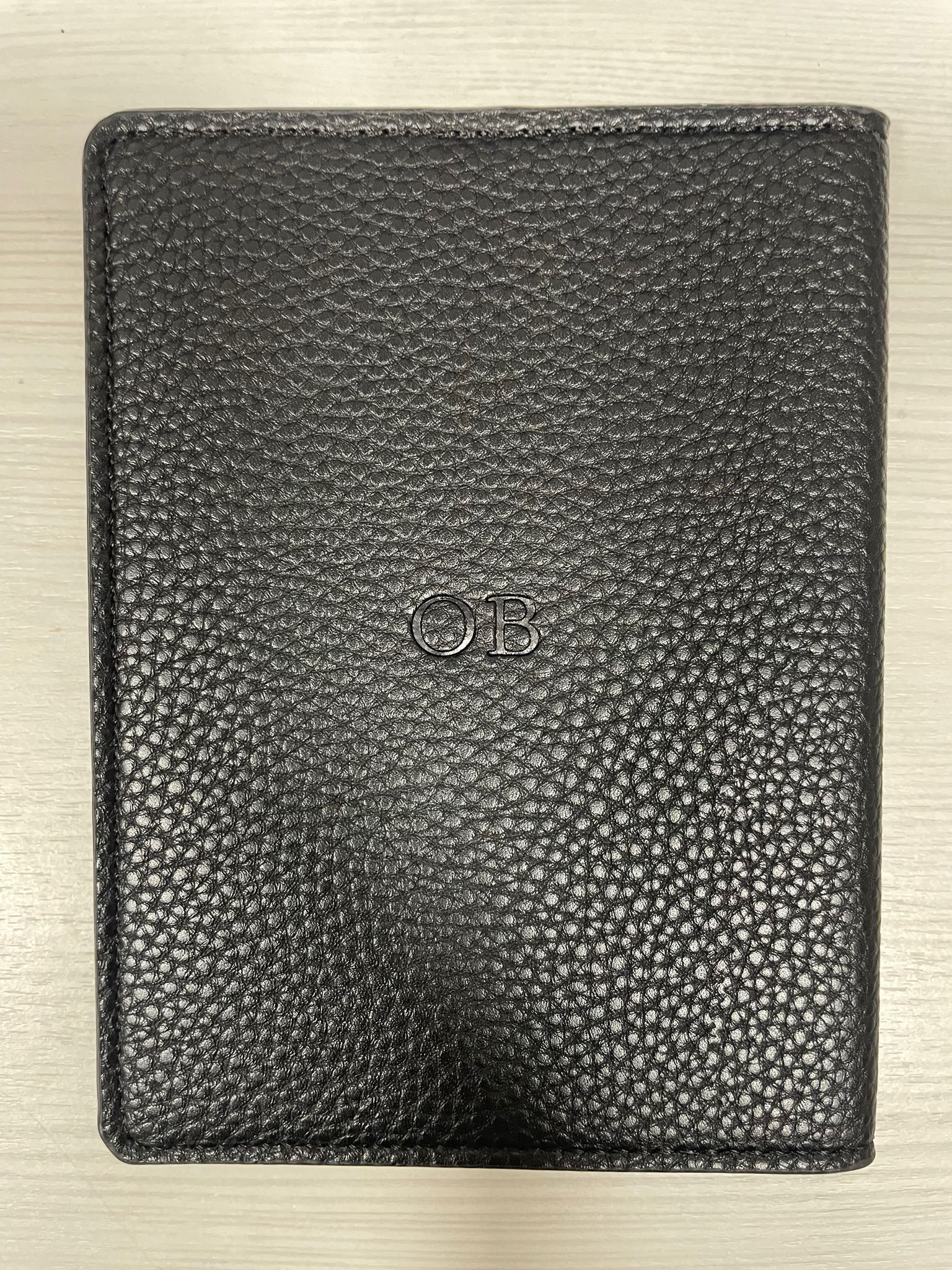 כיסוי לדרכון עם חריטה אישית OB מעור טבעוני בגוון שחור