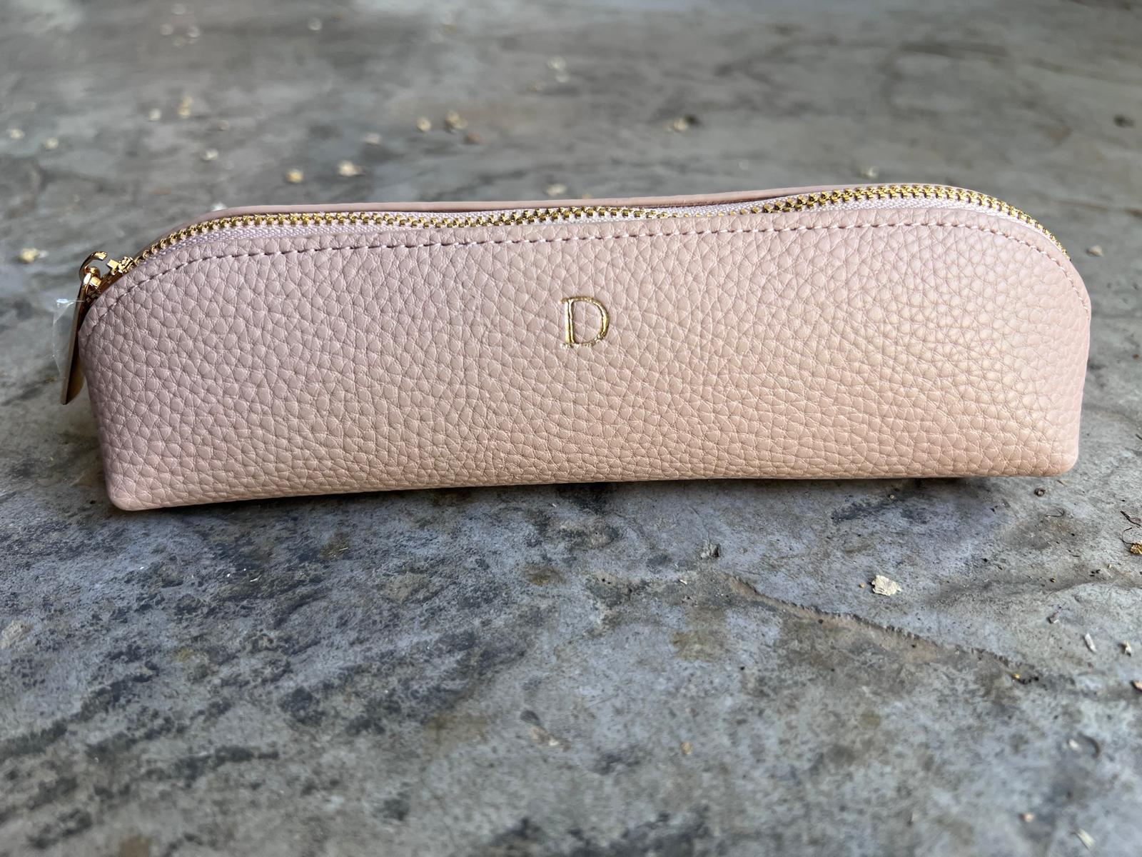 נרתיק כלי כתיבה עם רוכסן בעיצוב עור טבעוני בז'