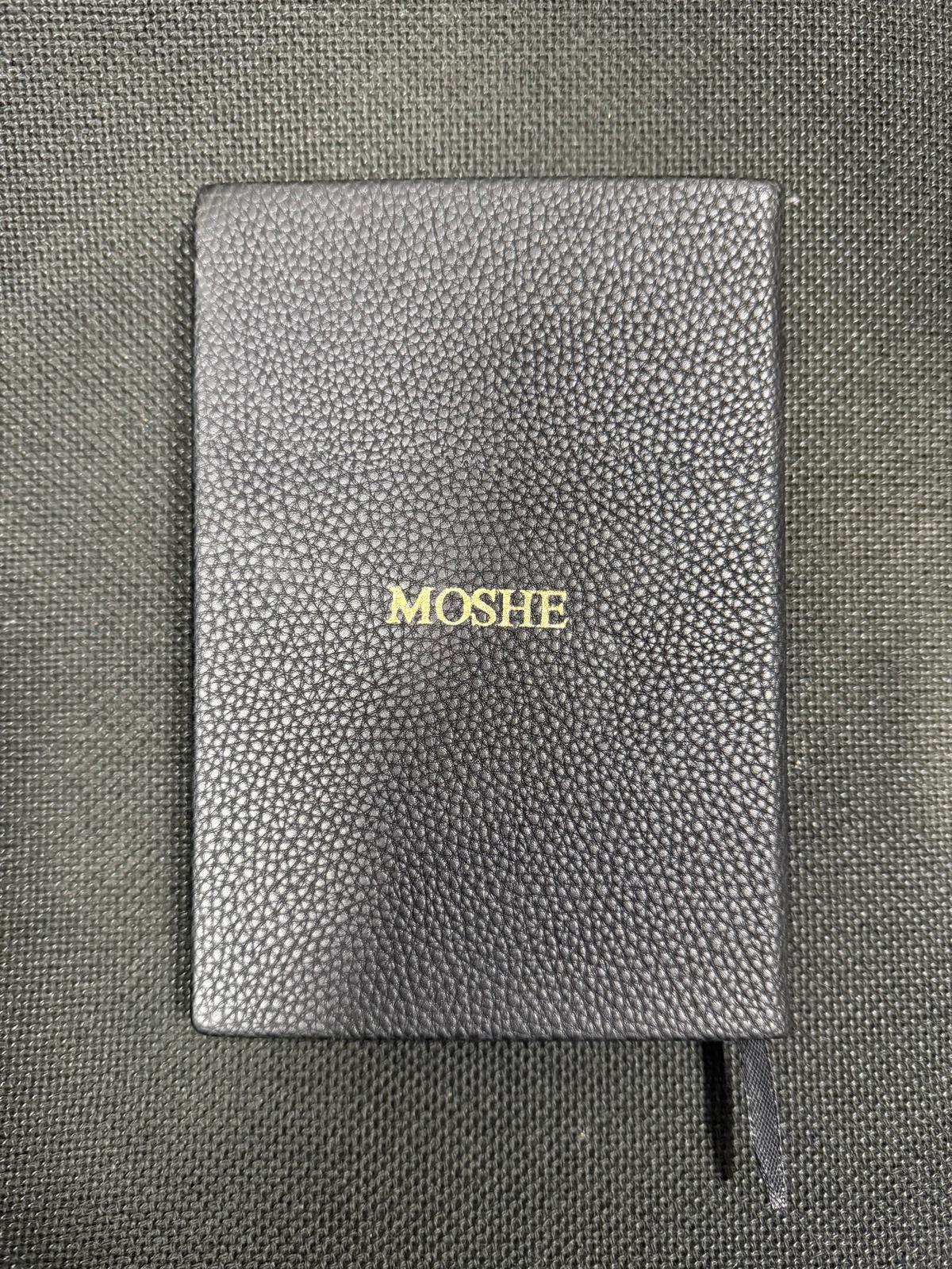 OUTLET - מחברת עור טבעוני שחור עם הטבעת זהב MOSHE