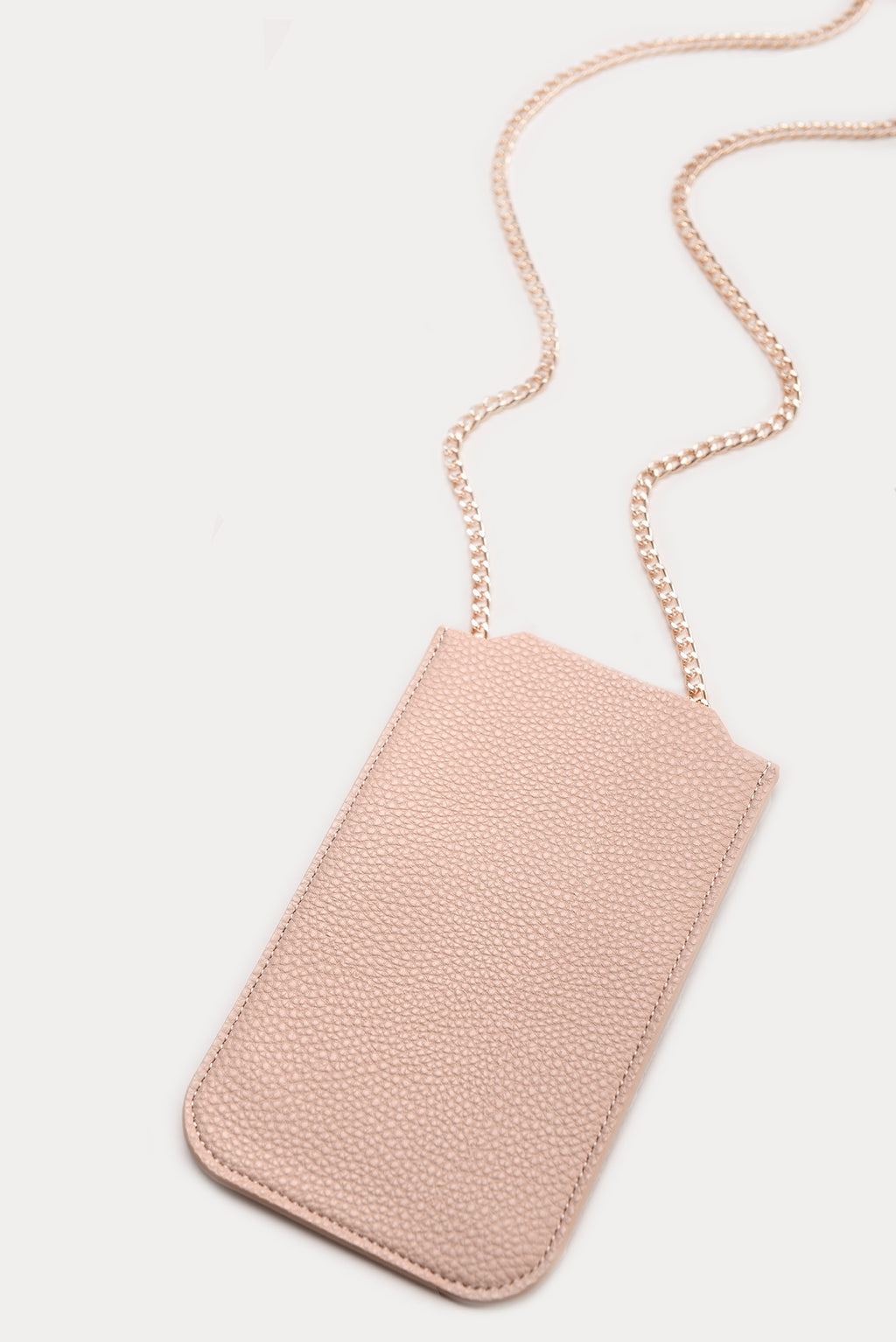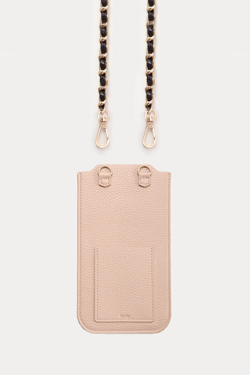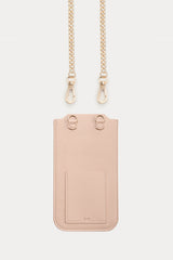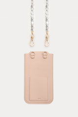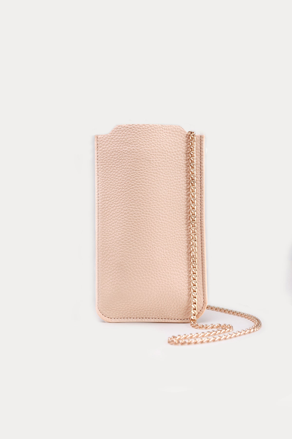 תיק צד לטלפון נייד מעור טבעוני בגוון בז' עם שרשרת לבחירה