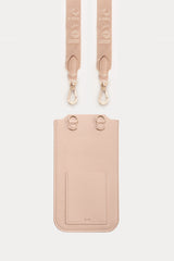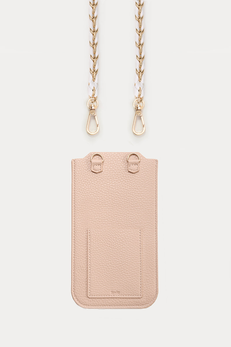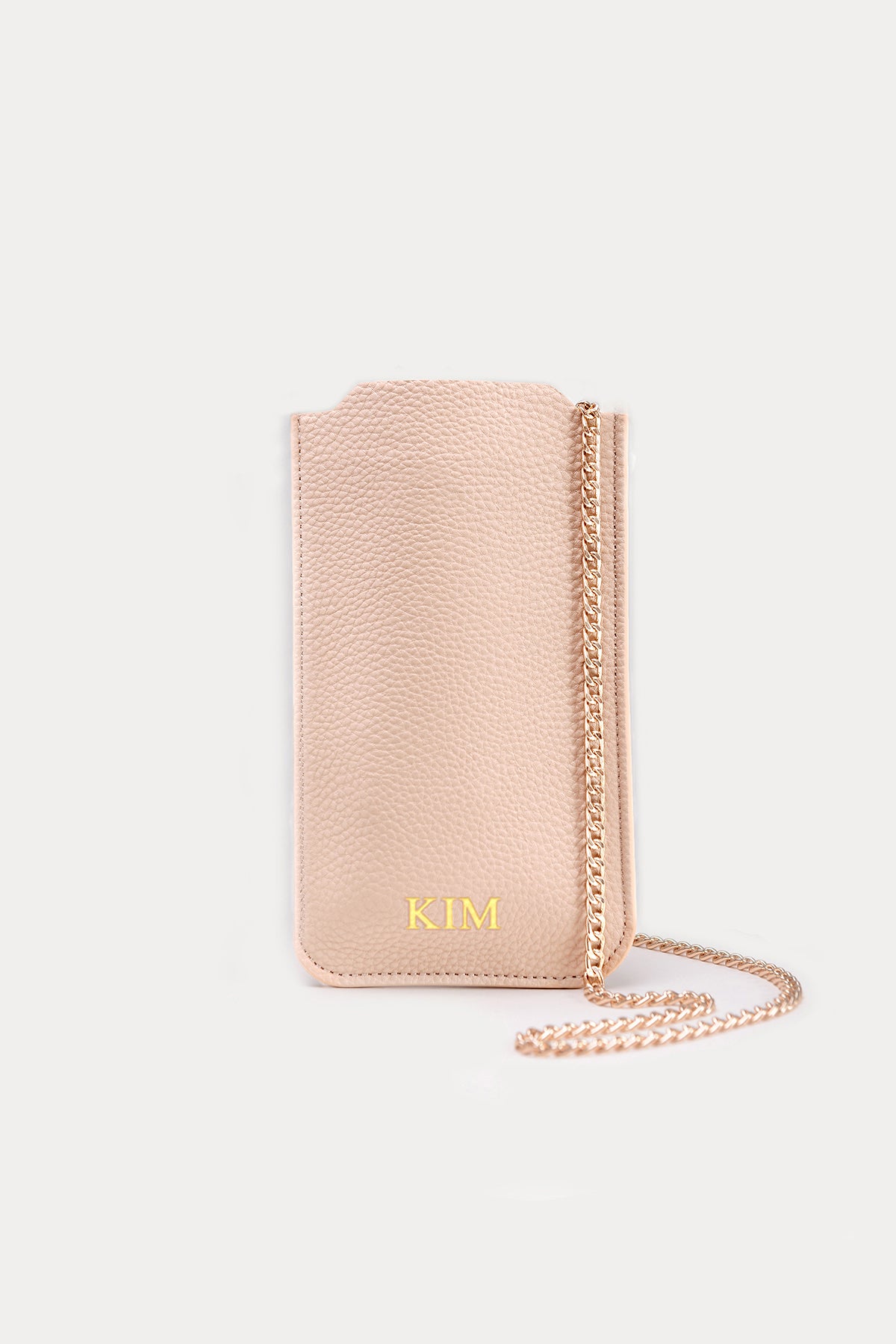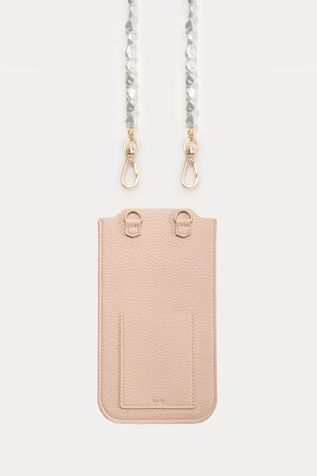 תיק צד לטלפון נייד מעור טבעוני בגוון בז' עם שרשרת לבחירה