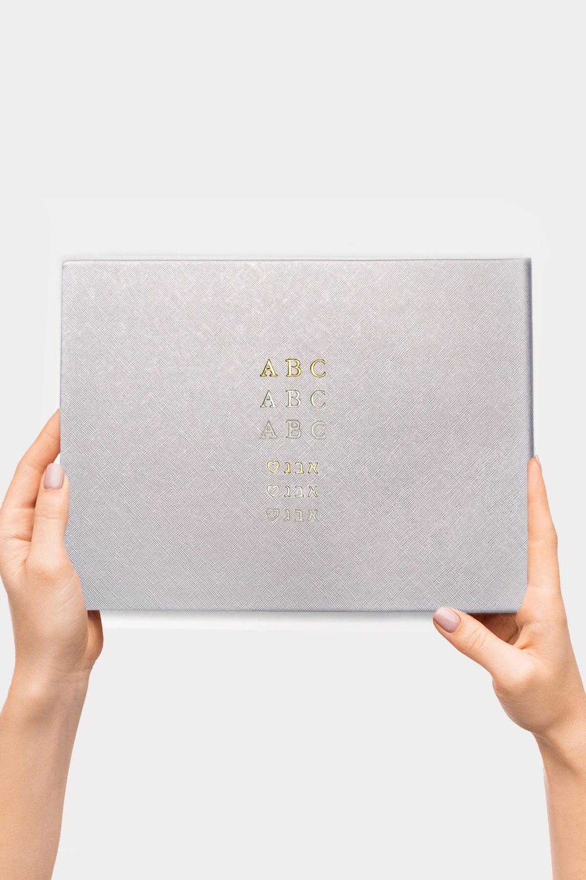 ספר הרישום שלנו כולל כריכה קשה עשויה עור טבעוני כסוף ורך לתחושה יוקרתית ואלגנטית. בנוסף, אפשר להוסיף על המוצר שם או ראשי תיבות בהטבעה והוא מיד הופך להכי אישי ומיוחד!